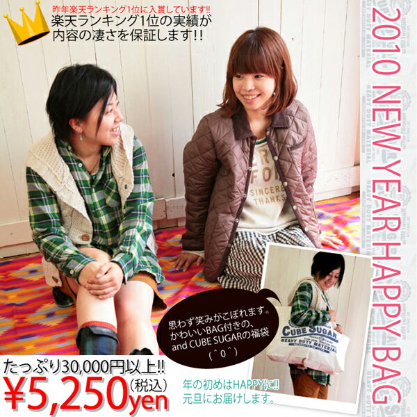 ●今回も楽天ランキング入賞しました☆たっぷり30,000円以上入って5,250円(税込)!!元旦にお届けします♪CUBE SUGAR☆2010NEW YEAR HAPPY BAG 【福袋】 価格: 5,250円 レビュー評価:5.0 レビュー数:2 2009秋冬の新作続々入荷しています。 (5,250円以上お買い上で送料無料!!)CUBE SUGAR ハイマルチブロード×インレー配色ナイロンパーカー販売価格:7,245円(税込)CUBE SUGAR ボア×ツイルリバーシブルベスト販売価格:6,930円(税込)CUBE SUGAR インレースラブガーゼドットプリントナイロンパーカージャケット販売価格:7,245円(税込)CUBE SUGAR エステルチェックボアリバーシブルベスト販売価格:6,930円(税込)CUBE SUGAR TOP起毛キルティングハーフ丈コート販売価格:7,980円(税込)CUBE SUGAR リサイクルパイル起毛洗い Supported by 楽天ウェブサービス |